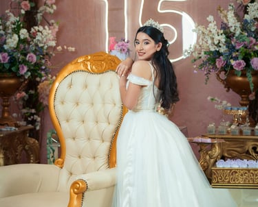 I plan fully customized quinceañera celebrations, taking care of every detail so the event truly reflects the personality of the birthday girl and the love of her family. From the dress to the last dance, I’ll be by your side to make the whole process smooth, joyful, and stress-free.